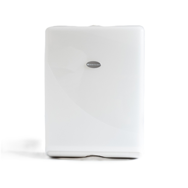 Papírtörlő adagoló kiváló minőségű műanyagból. Gyöngyfehér színű. 37.4 x 27.5 x 10.6 cm. Többszörös és C-hajtású papírokhoz (9003320, 9003321, 9003323 és 9006451). Üresen szállítva.