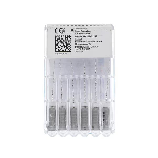 Rozsdamentes acélból készült. Kifejezetten magas szakítószilárdsággal tervezték, hogy biztosítsa az összetett és meszes csatornák könnyű lokalizálását és feltárását. Kvadratikus forma. Fokozott vágási hatékonyság a forgó kialakításnak köszönhetően. Előre szerelt szilikon stopper. 21 és 25 mm hosszú. 6db