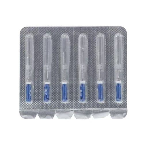 Steril, kiváló minőségű, szuper rugalmas, csúcsminőségű rozsdamentes acélból. ISO-kódolt, autoklávozható, ergonomikus markolattal és szilikon stopperrel. Hossz: 21, 25 mm. 31 mm-es választék. Tartalom: 6 db