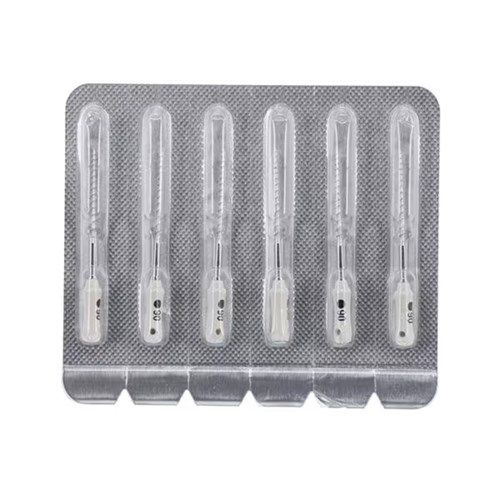 Steril, kiváló minőségű, szuper rugalmas, csúcsminőségű rozsdamentes acélból. ISO-kódolt, autoklávozható, ergonomikus markolattal és szilikon stopperrel. Hossz: 21, 25 mm. 31 mm-es választék. Tartalom: 6 db