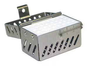 5 x 6.5 x 4.5 cm, bemérővel rendelkező, autoklávozható, rozsdamentes endo műszer tároló kazetta.