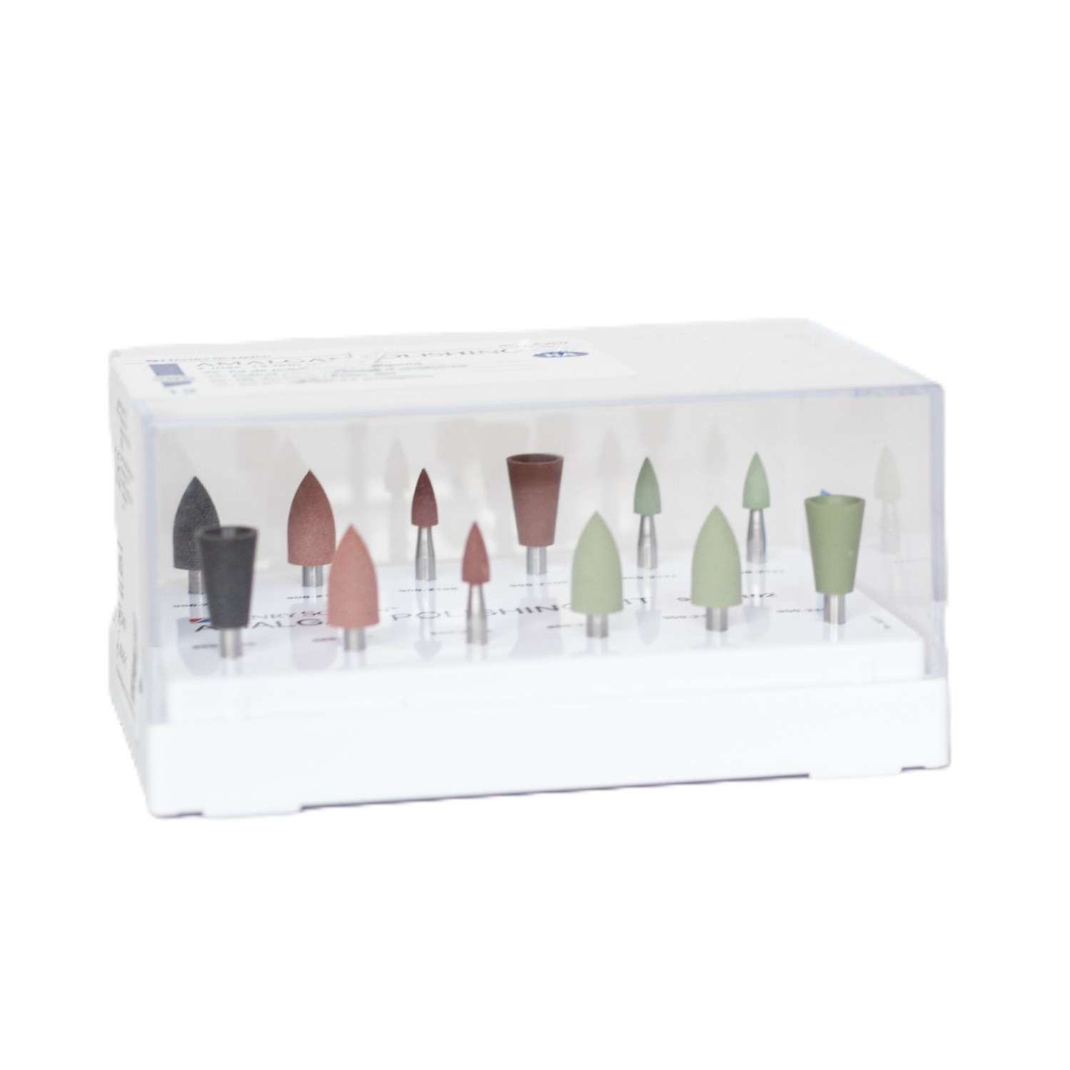 Fekete, barna és zöld polírozók könyökdarabokhoz, arany, amalgám és kompozit anyagok elő-, és magasfényű polírozásához. Javasolt fordulatszám: 5000 - 10000 ford./perc.