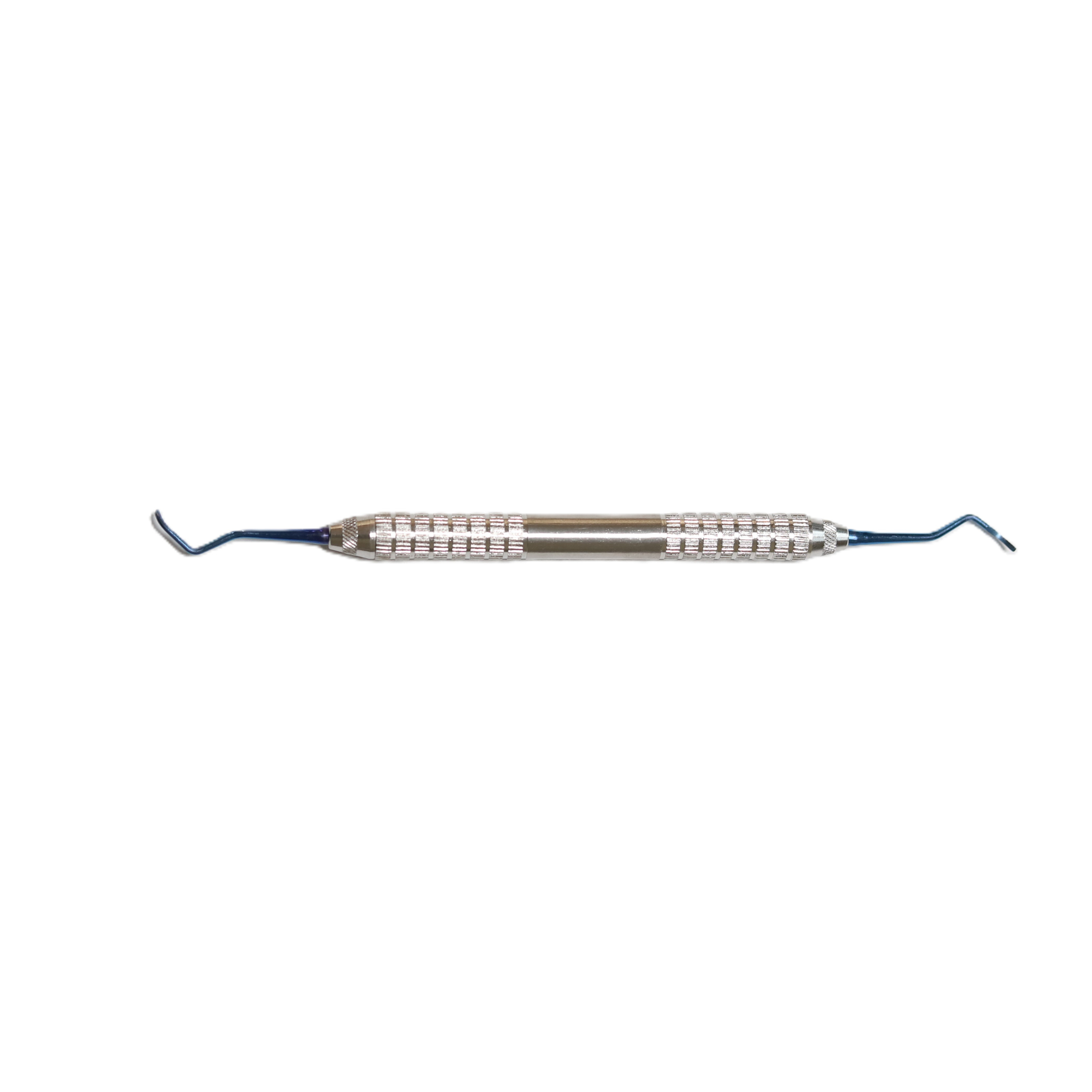 Kétvégű titán műszer Maxigrip fogantyúval. Kifejezetten kék hegyekkel rendelkezik, implantátumok és felépítmények tisztítására fejlesztették ki.