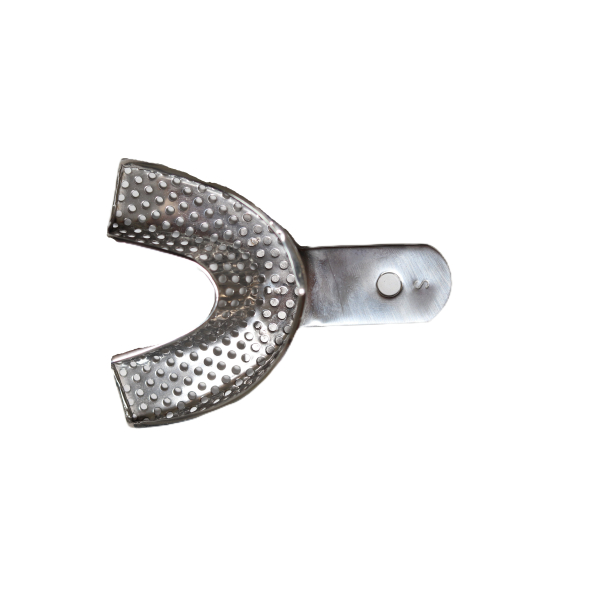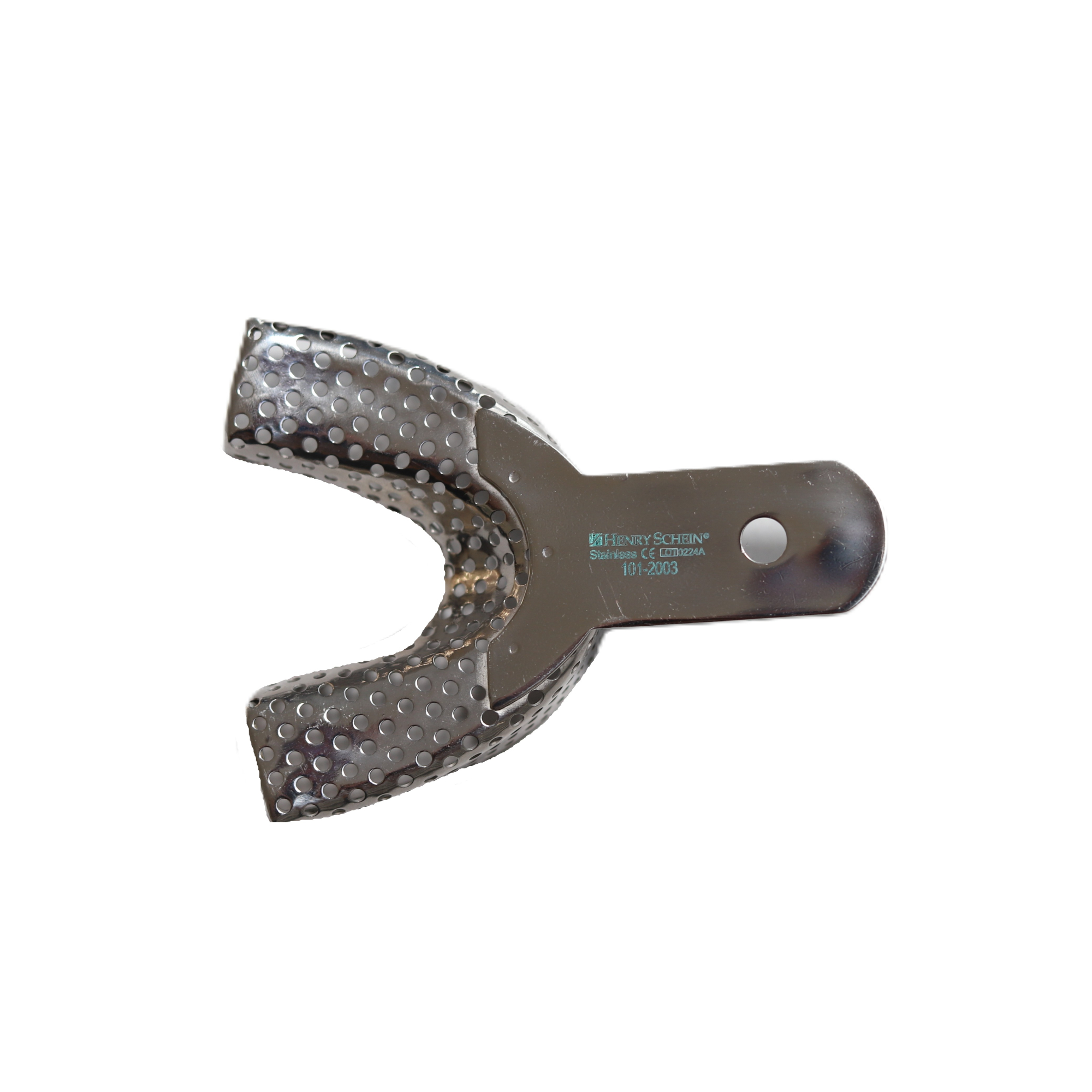 Kiváló minőségű, tömör rozsdamentes acél lenyomatkanál. Minden sterilizálási eljárásra alkalmas, kontúros és párnázott élű, fogas állkapocshoz. Rim-Lock stílus.
