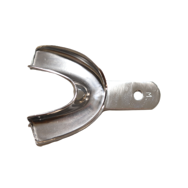Kiváló minőségű, tömör rozsdamentes acél lenyomatkanál. Minden sterilizálási eljárásra alkalmas, kontúros és párnázott élű, fogas állkapocshoz. Rim-Lock stílus.
