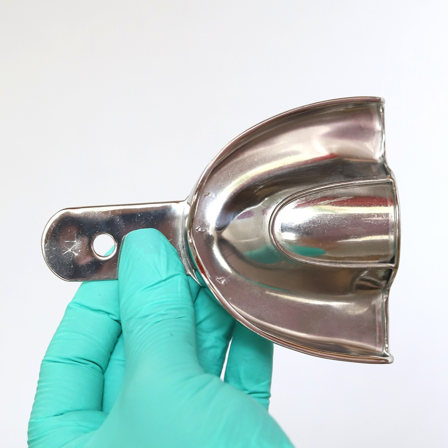 Kiváló minőségű, tömör rozsdamentes acél lenyomatkanál. Minden sterilizálási eljárásra alkalmas, kontúros és párnázott élű, fogas állkapocshoz. Rim-Lock stílus.