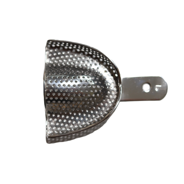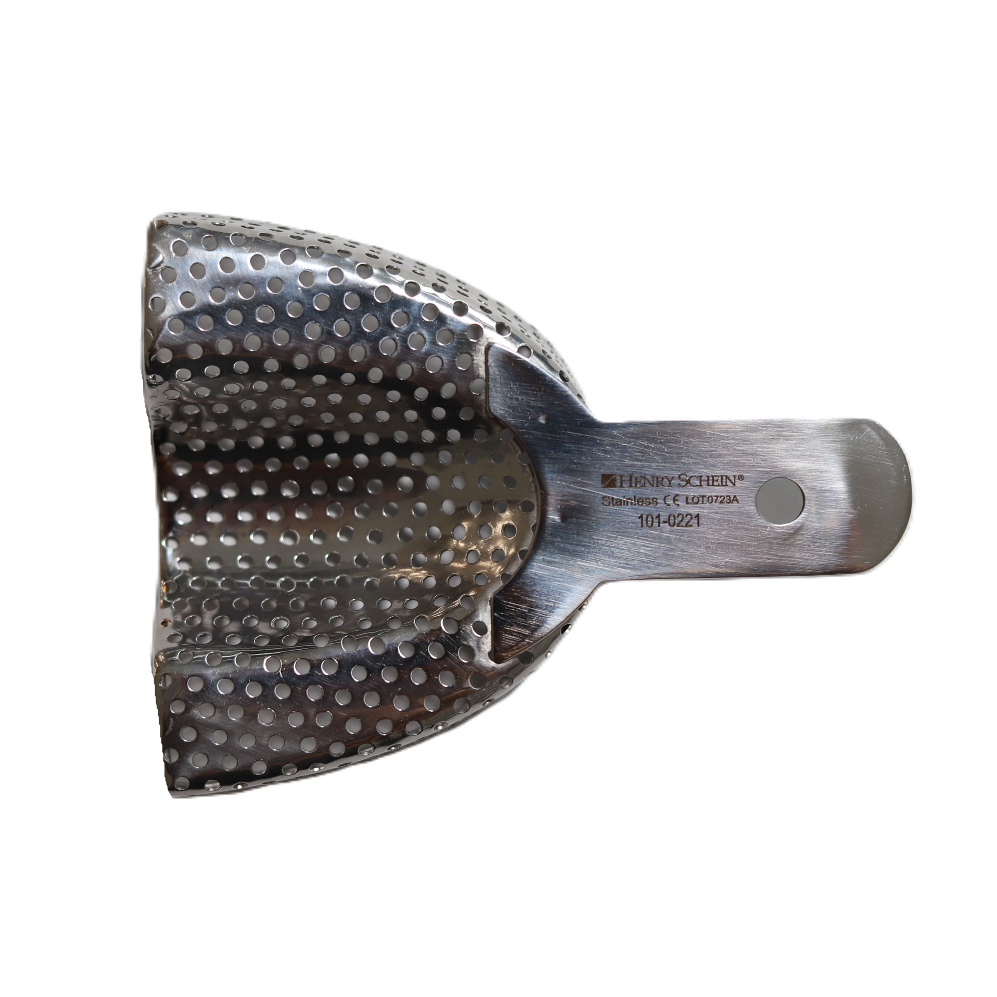 Kiváló minőségű, tömör rozsdamentes acél lenyomatkanál. Minden sterilizálási eljárásra alkalmas, kontúros és párnázott élű, fogas állkapocshoz. Rim-Lock stílus.