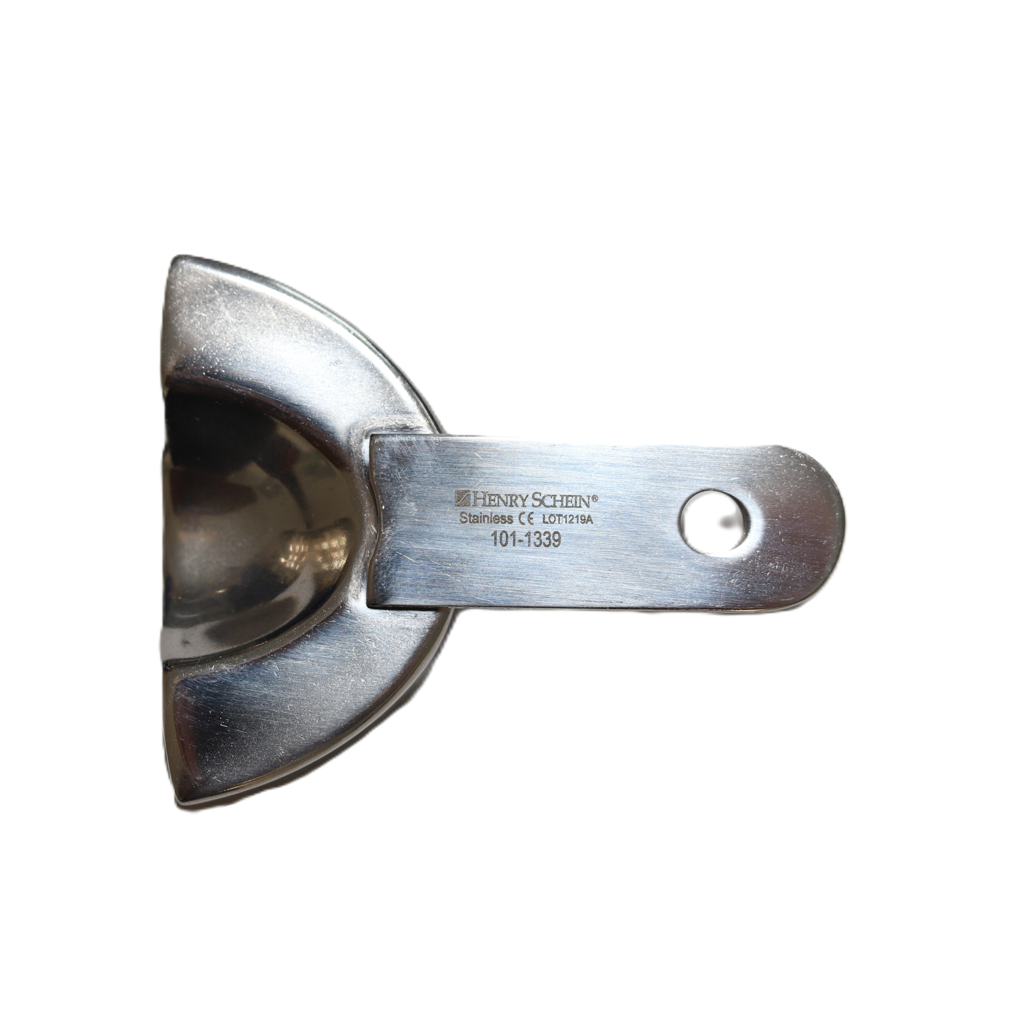 Kiváló minőségű, tömör rozsdamentes acél lenyomatkanál. Minden sterilizálási eljárásra alkalmas, kontúros és párnázott élű, fogas állkapocshoz. Rim-Lock stílus.