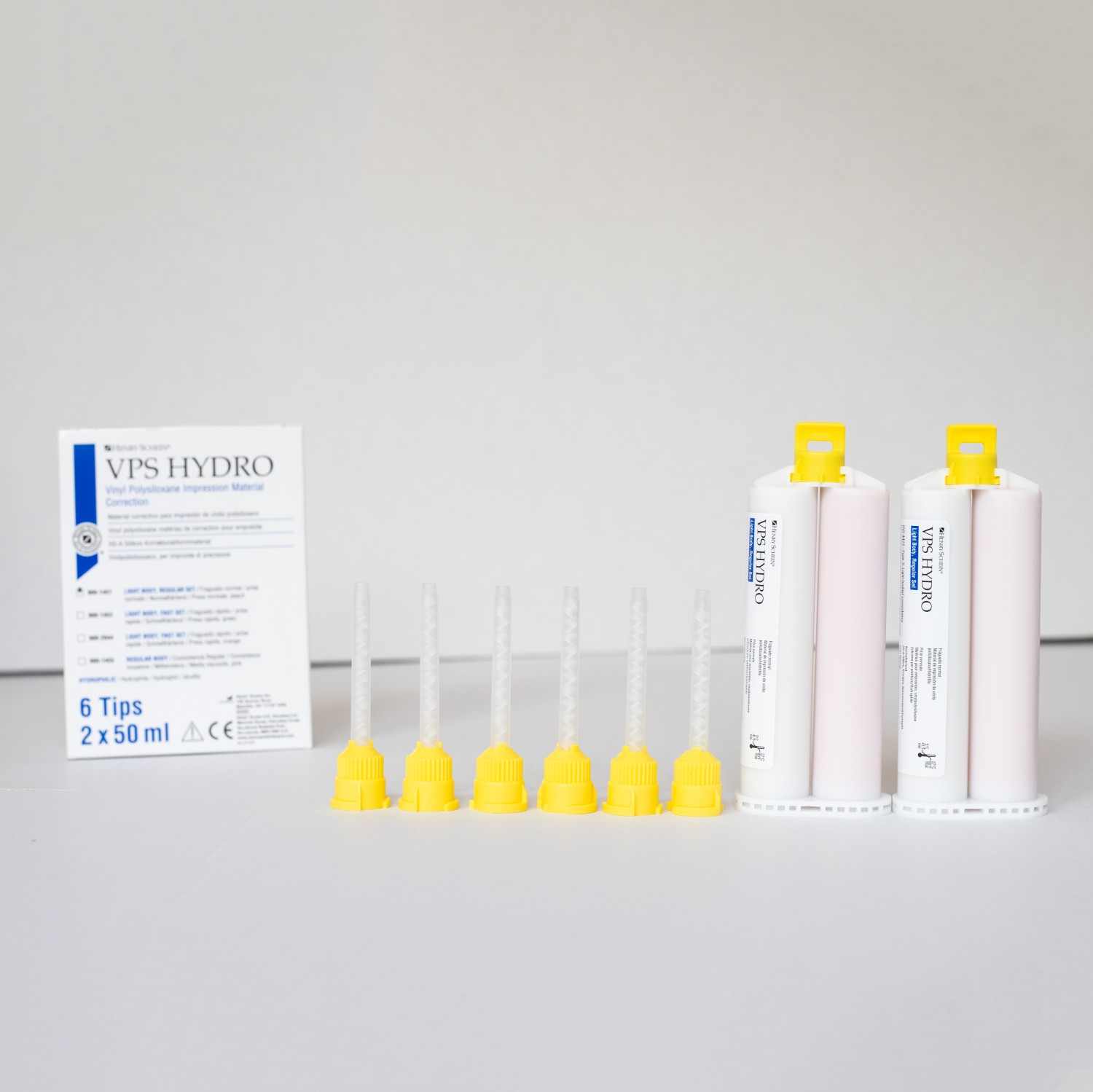 2 x 50ml dupla kartusos, korrekciós, hidrofil, addíciós térhálósodó szilikon lenyomat anyag. Teljes feldolgozás idő (beleértve a keverési idő): 5:30 perc. Intraorális kötési idő 3:30 perc. Shore A keménység 45 +/-2. Kötés utáni deformáció (%) > 99,5%. Deformáció nyomás alatt (%) 3-5%. Szín: barack