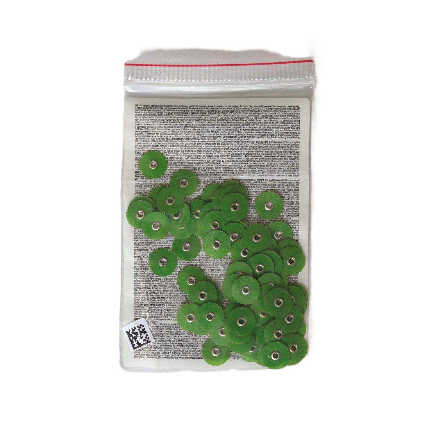 Rugalmas finírozó és polírozó korongok alumínium-oxid bevonattal, Ø 9,5 mm és 12,7 mm; mindkét átmérő durva, közepes, finom és extra- finom szemcseméretekkel. Könyökdarabban használható mandrell.
